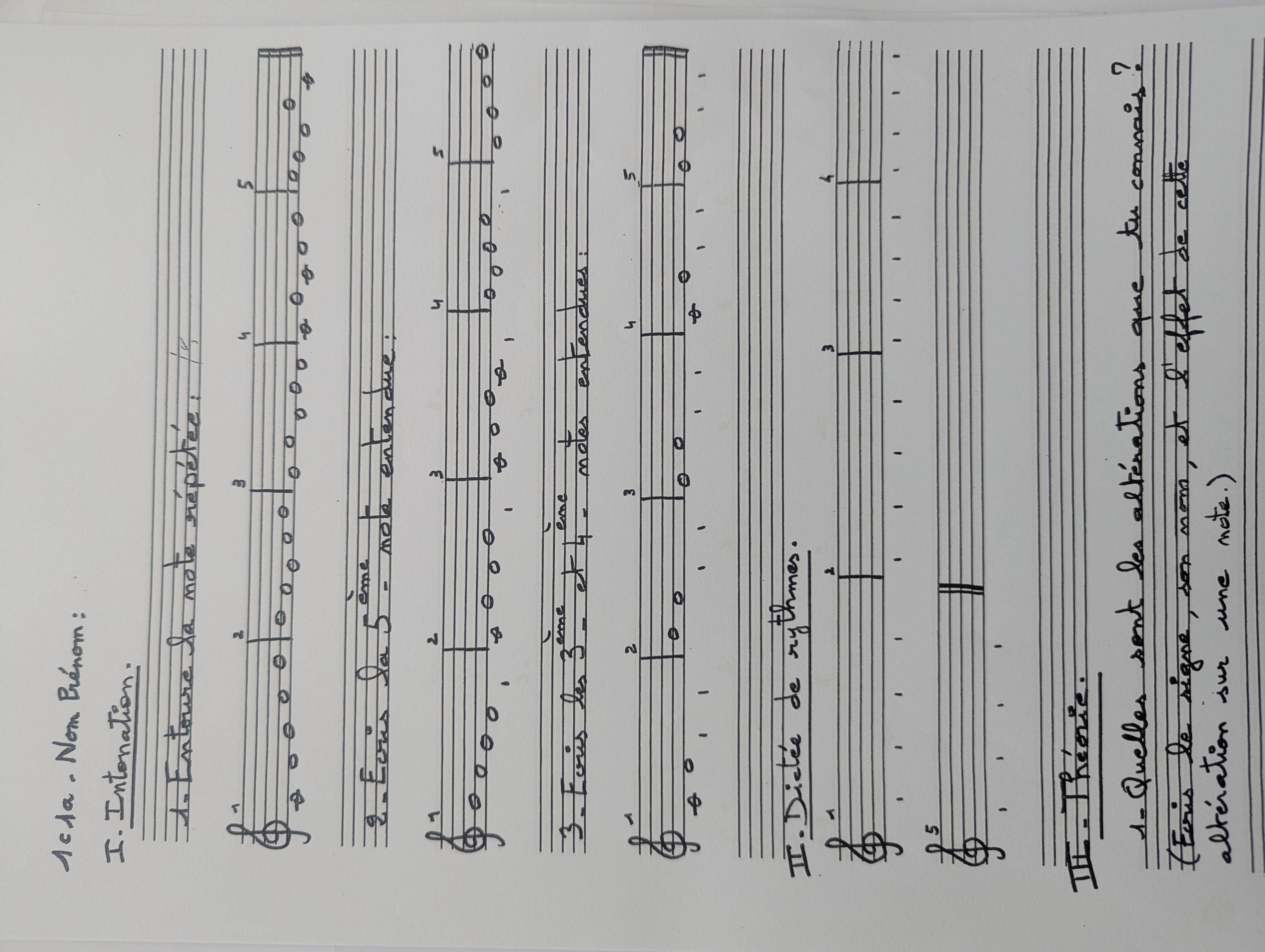 3) Fiche "Écriture de notes de musique" (photocopie distribuée)